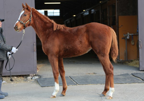 12月中旬現在、谷川牧場第二分場で、午前10時過ぎから放牧して、翌朝6時に収牧する昼夜放牧が引き続き当歳馬14頭で行われている。牧場スタッフは「ひと言で言えば、よく食べて、よく寝る仔ですね。馬房の中でも、気持ちよさそうに寝息を立てて横になってよく寝ていますし、放牧地にいる間もよく食べて、先日も隣の放牧地にいた白鳥の群れが飛び立った際の音に他の馬は驚いたり、そちらの方向へ意識を向けたりしましたが、本馬は気にせず一心に牧草を食べ続けていました。お陰で順調に身体は成長しています」とのことだ。12月上旬の馬体重は345キロ。