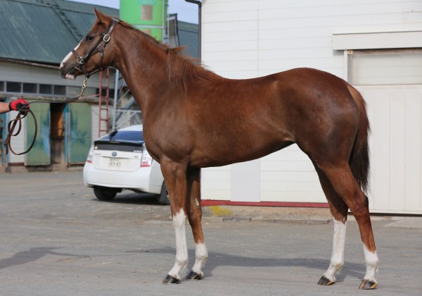 8月中旬現在、米田牧場分場で午前8時半~翌朝5時半迄の昼夜放牧が行われている。米田専務は「1日も休むことなく昼夜放牧を続けています。身がしっかりと詰まった張りのある馬体で、最近は気性が徐々に大人になってきたように感じます。先日のクラブ展示会でも雰囲気に呑まれることなく、あの人数を前にしても結構落ち着いていたと思います。今後は8月末に新冠育成公社の山野勝也ステーブルへ移動して育成を開始する予定です」とのこと。なお、父の2世代目産駒となる現3歳世代も、4戦3勝のナルカミや大井の優駿スプリントを制したハーフブルーなどダートでの活躍が目立っている。7月26日の馬体重は422キロ。