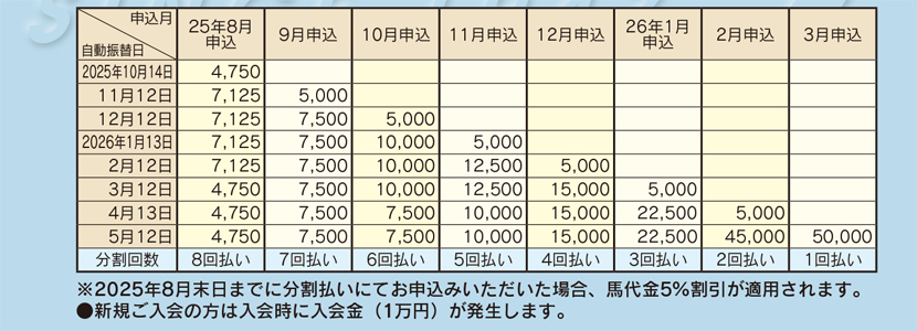 早期割引 | 一括払い : | 2025年11月末まで 3%割引 ( 48,500円 ) | *2025年12月以降割引なし |