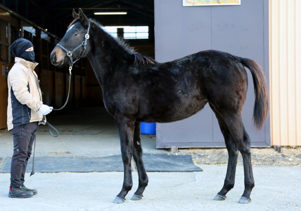 1月中旬現在、谷川牧場第二分場で、午前10時過ぎから放牧して、翌朝6時に収牧する昼夜放牧が引き続き1歳馬14頭で行われている。牧場スタッフは「この寒い時期に昼夜放牧を続けて行っている中でも、馬体にはしっかり張りがあって、高い水準で健康を維持できています。中間もよく食べて、よく動いて、ボディコンディション的にも丁度いい感じです。第二分場にいる今年の明け1歳馬は、どの仔も素直で手が掛からない感じですが、本馬は、これまでの兄姉の同時期と比べても精神的に大人びている印象がありますよ」とのことだ。1月上旬の馬体重は378キロ。