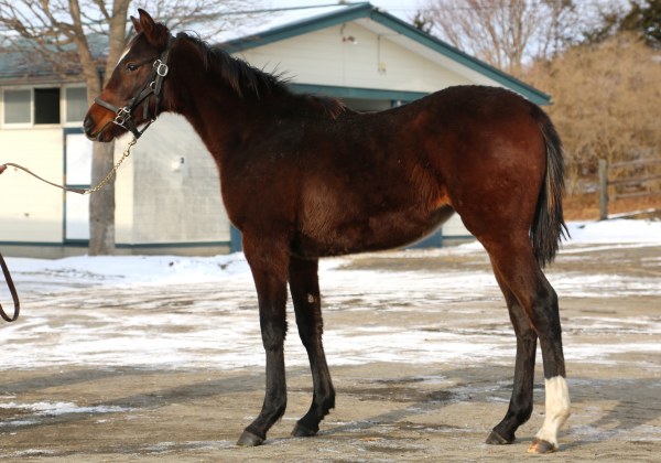 1月中旬現在、大狩部牧場で昼夜放牧中。下村代表は「最初から何でもソツなくこなすインプレス6と違い、初めて経験する事には、最初はよく観察して見極めようとするタイプですが、学習能力が高く、理解してしまえば、2回目からは自らスッスッと行きます。寒くなって可動域を減らさないように行っている歩きの練習で、初めて横木を跨がせた時もそんな感じでした。1頭1頭の個性がそんなところでも感じられて、実に面白いです。中間、体重は10キロ増といったところですが、数字以上に身になってきている印象です」とのことだ。1月10日の馬体重は270キロ。