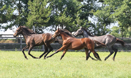 募集時期の立ち・歩様動画はもちろん、幼駒時代には、放牧地を仲間たちと無邪気に走り回るような日常風景動画も豊富にご提供。幼いころから愛馬のふだんの素顔や成長過程を知ることで、愛着がどんどん増していきます。クラブツアーや個人でも可能な牧場見学